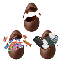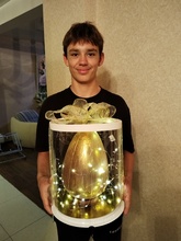 Шоколадный гигант в эстетической упаковке аквариум, яйцо покрыто 23 кратным съедобным золотом. Наполнение может быть любым.