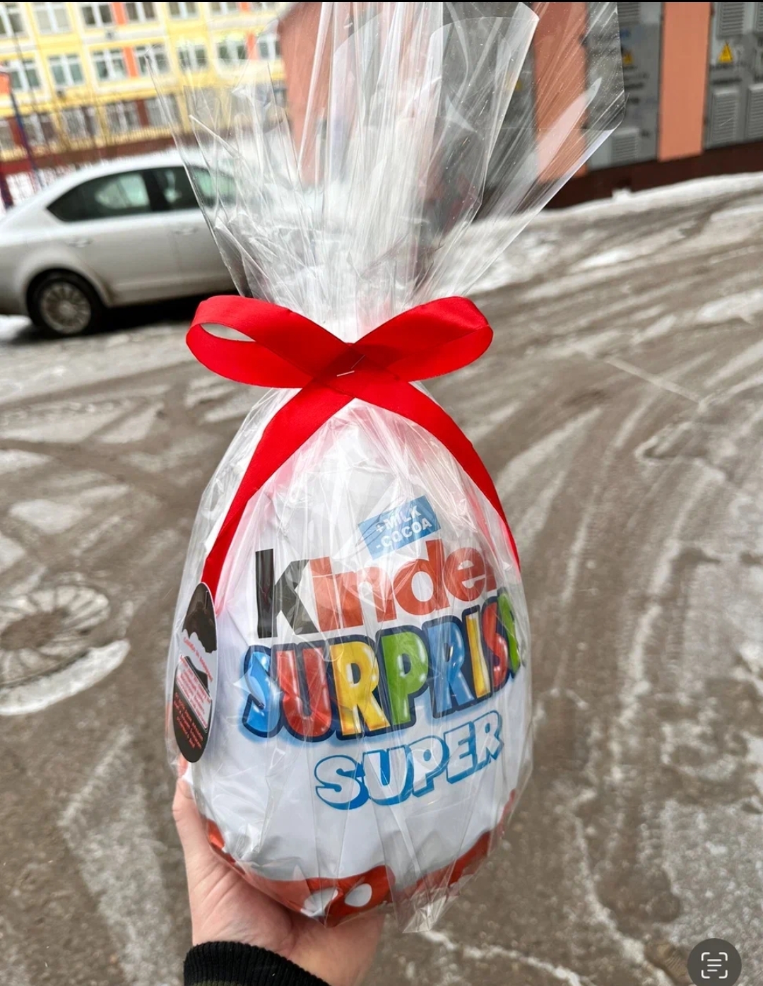 Шоколадное яйцо, большой киндер сюрприз, вес самого яйцо 1 кг, во внутрь можно положить любое наполнение , от конфет до дорогого подарка сюрприза.